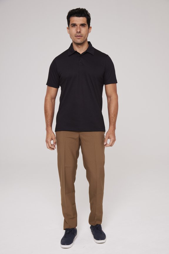 Confeccionada em meia malha 100% algodão, com gramatura aproximada de 170 g/m², proporciona toque macio (Soft Touch), alta respirabilidade (Breathable) e excelente absorção de umidade. O tecido garante conforto térmico, caimento natural e alta solidez de cor, mantendo a aparência mesmo após lavagens frequentes. Conta com acabamento reforçado, incluindo gola do próprio tecido e peitilho estruturado com botões.